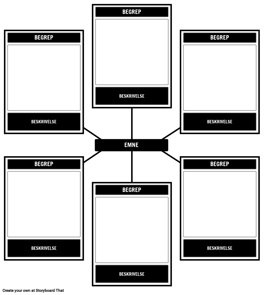 Edderkoppkartmal for viktige vilkår. La elevene identifisere viktige begreper / ideer rundt et enkelt emne.