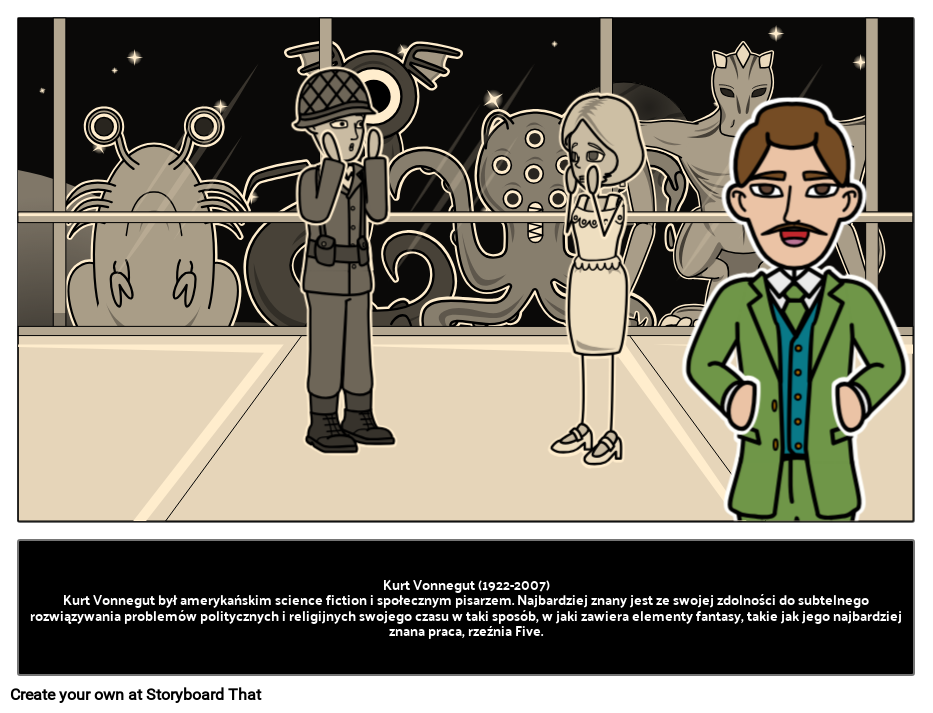 Kurt Vonnegut był amerykańskim science fiction i społecznym pisarzem. Najbardziej znany jest ze swojej zdolności do subtelnego rozwiązywania problemów politycznych i religijnych swoich czasów w taki sposób, że zawiera elementy fantasy, takie jak w jego najbardziej znanym dziele Slaughterhouse-Five.