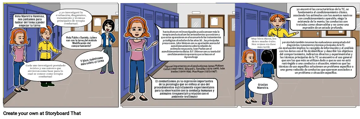 hasta ahora en mi investigación puedo conocer más la terapia conductual con los antecedentes que existen y que estos aparecieron en el escenario de los tratamientos psicológicos al rededor de los años 50 , los principales precursores, John Watson con su aportación acerca del acondicionamiento sobre la relación de estímulo=respuesta, Ivan Pavlov con el acondicionamiento clásico. B.F. Skinner con su teoría del condicionamiento operante que se basa en el Aprendizaje
