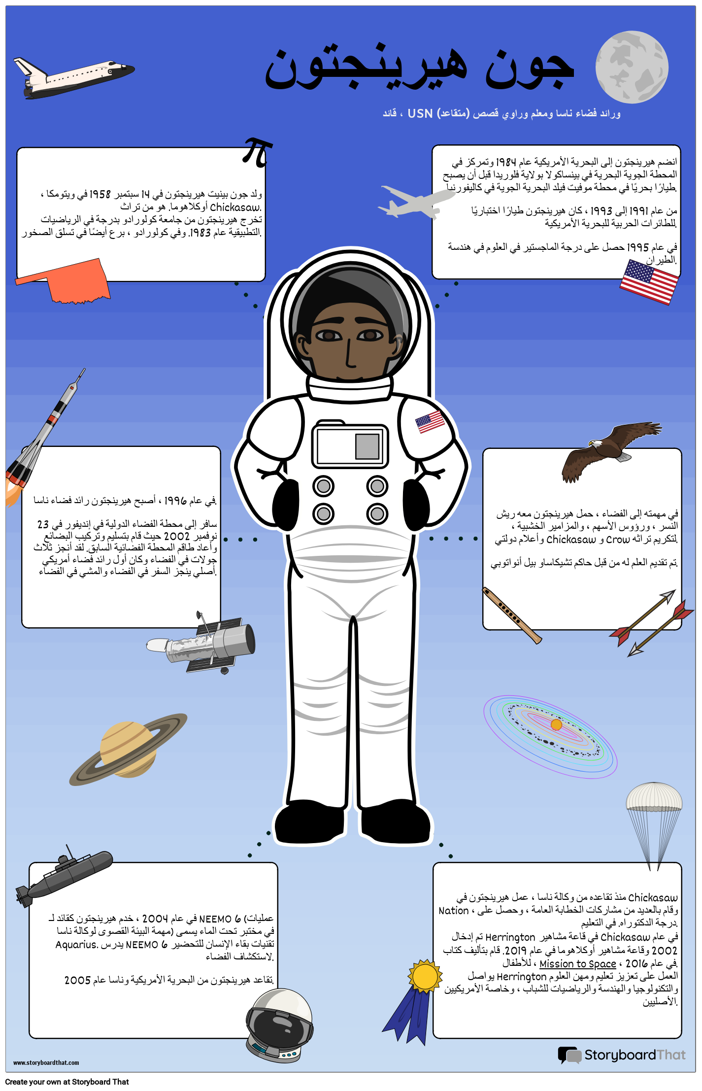جون هيرينجتون (1958-) (تشيكاسو). أول عضو مسجل في قبيلة أمريكية أصلية يطير في الفضاء. لتكريم تراثه من Chickasaw ، حمل Herrington علمها في رحلته إلى الفضاء التي استمرت ثلاثة عشر يومًا. تم تقديم العلم له من قبل حاكم تشيكاساو بيل أنواتوبي.