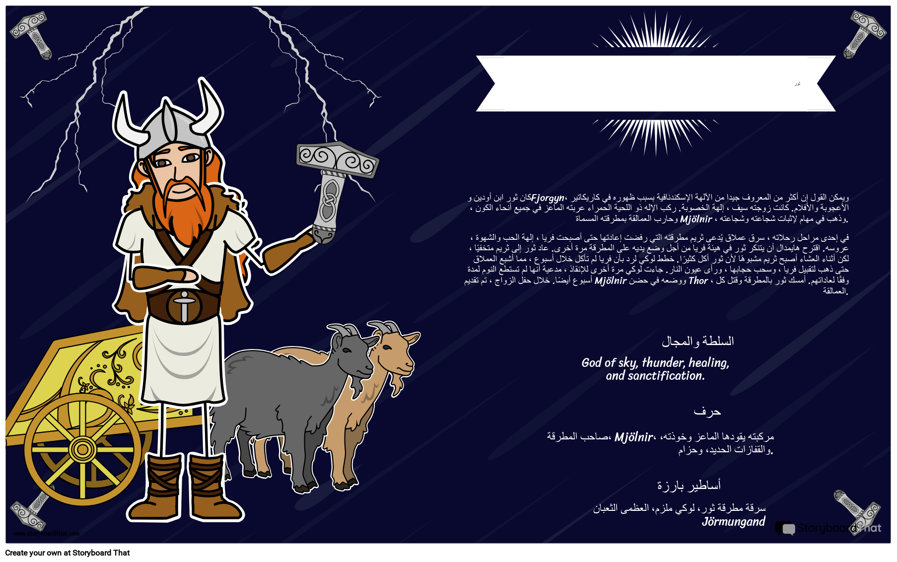 يمكن للطلاب إنشاء ملصق يبرز إله أو إلهة نورسية من اختيارهم! هذا المثال عن Thor.