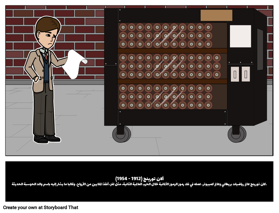 ألان تورينج (1912 - 1954)كان تورينج عالم رياضيات بريطاني وعالم كمبيوتر. عمله في فك رموز الرموز الألمانية خلال الحرب العالمية الثانية، مثل لغز، أنقذ الملايين من الأرواح. وغالبا ما يشار إليه باسم والد الحوسبة الحديثة.