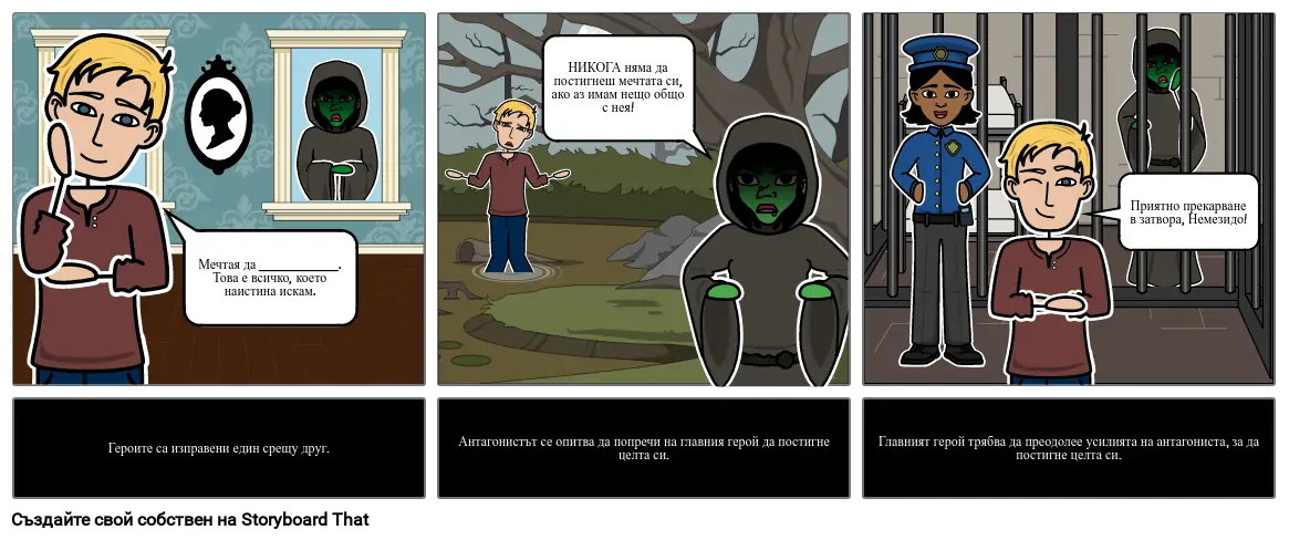 Антагонистът се опитва да попречи на главния герой да постигне целта си.
