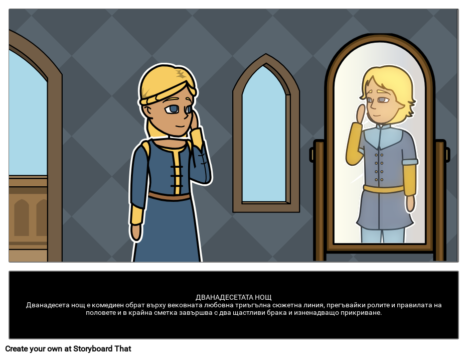 ДВАНАДЕСЕТАТА НОЩДванадесета нощ е комедиен обрат върху вековната любовна триъгълна сюжетна линия, прегъвайки ролите и правилата на половете и в крайна сметка завършва с два щастливи брака и изненадващо прикриване.