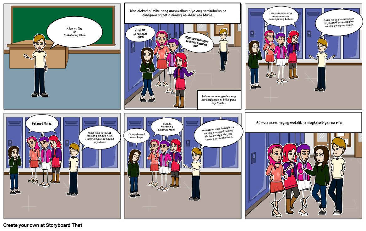 Naglalakad si Mike nang masaksihan niya ang pambubulas na ginagawa ng tatlo niyang ka-klase kay Maria...