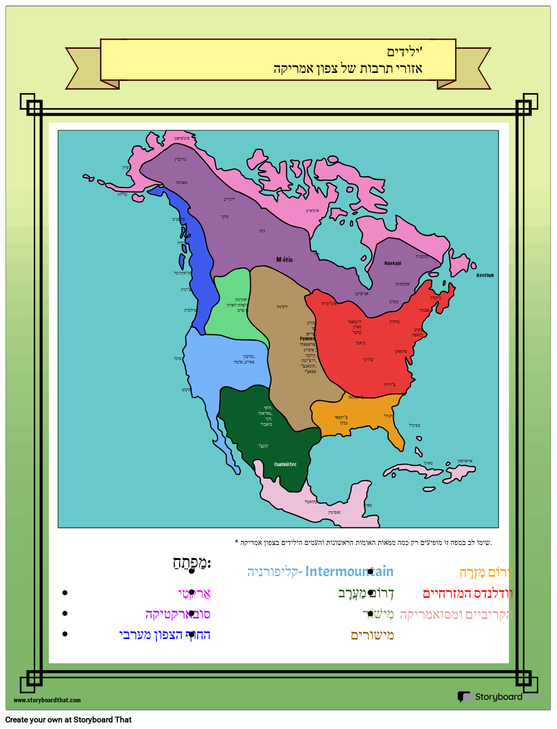 התלמידים יכולים לשנות את צבעי המפה כך שיתאימו למפתח המדגים את הידע שלהם באזורים השונים. לאחר מכן, הם יכולים להוסיף שמות של עמים ילידים שמוצאם בכל אזור. מורים יכולים להוסיף דרישות נוספות לפעילות זו ולבקש מהתלמידים לכלול מידע נוסף על כל אזור בתיבות כגון מאפיינים פיזיים, אקלים או מדינות / מחוזות הכלולים באזורים.
