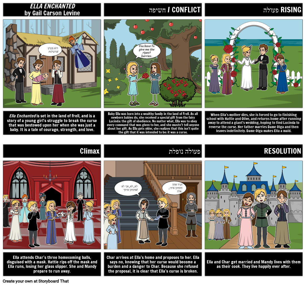 התלמידים יכולים ליצור תרשים עלילה חזותי עבור אלה מכושף מאת גייל קרסון לוין