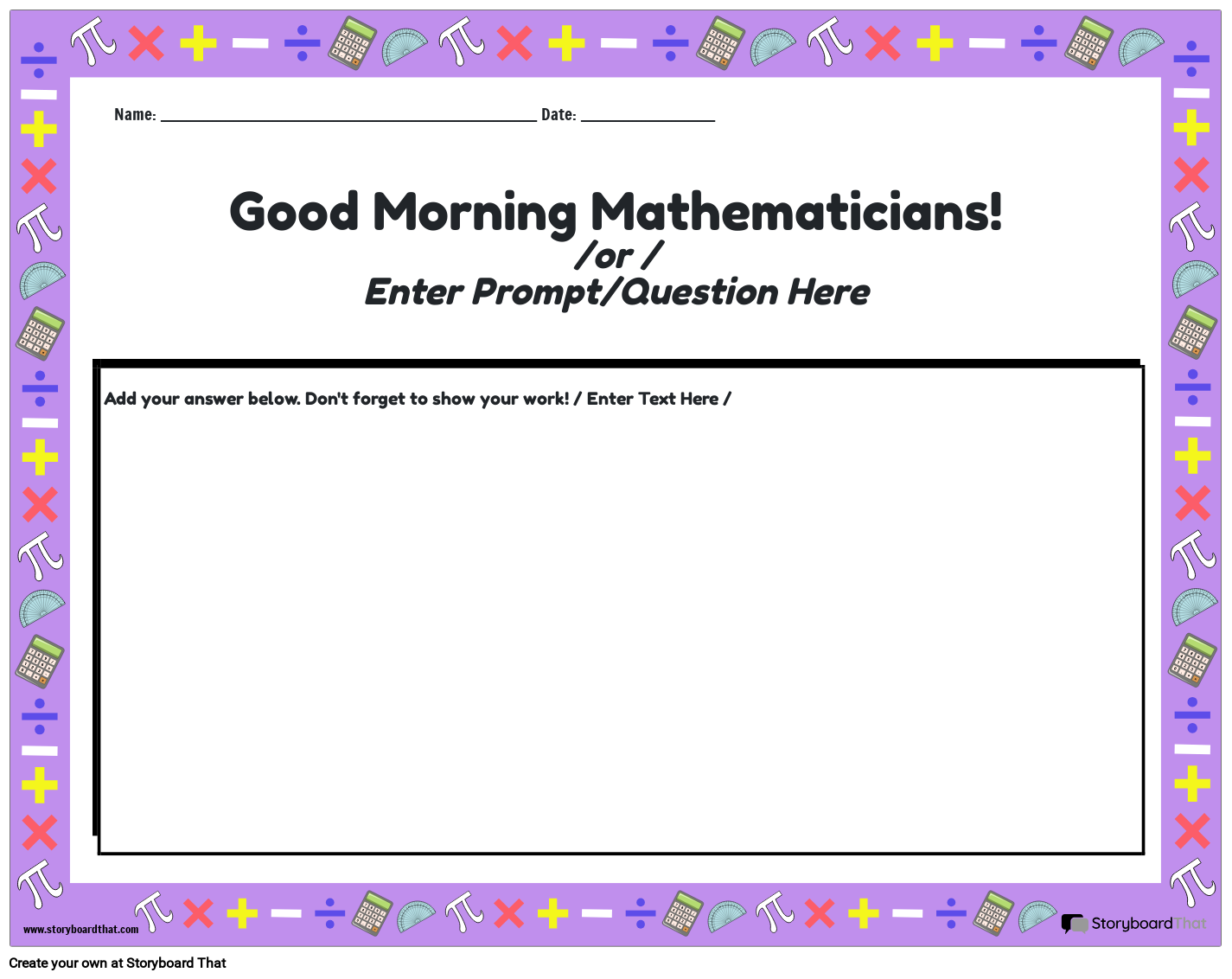 Good Morning Mathematicians!/or / Enter Prompt/Question Here