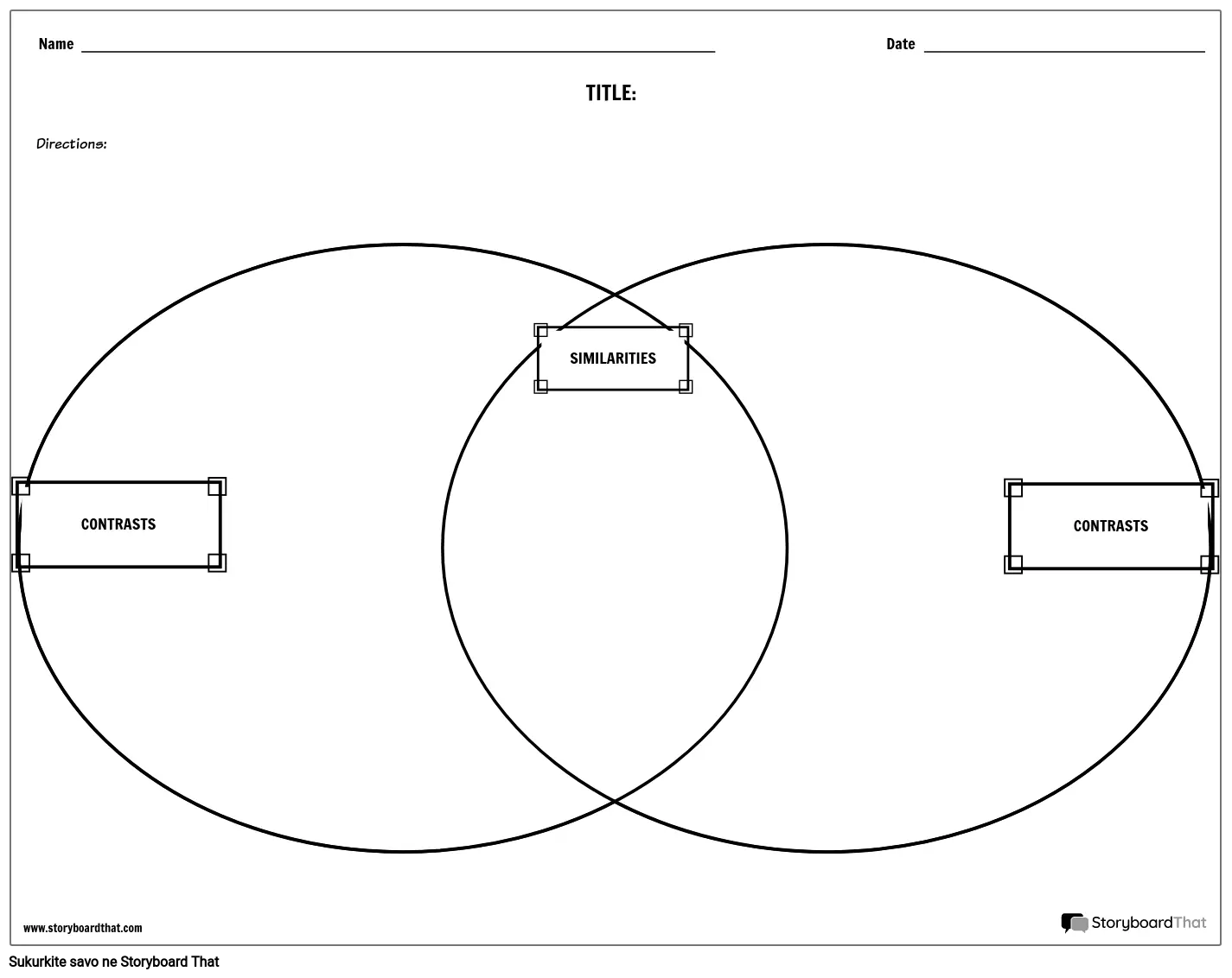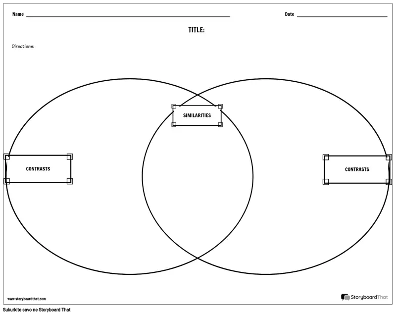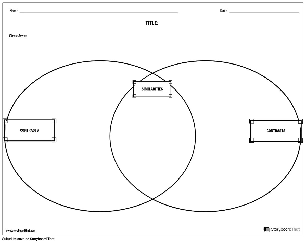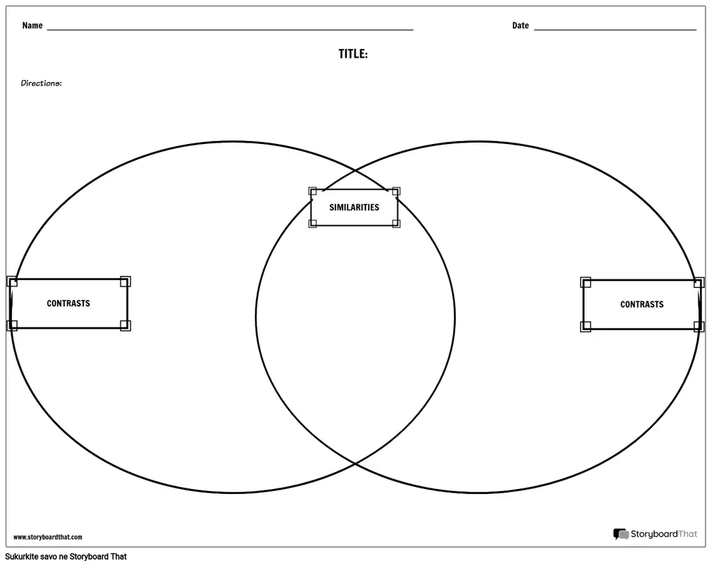 Palyginkite ir kontrastuokite Venno diagramos darbalapio šabloną, kad galėtumėte palyginti literatūrą ir dar daugiau!