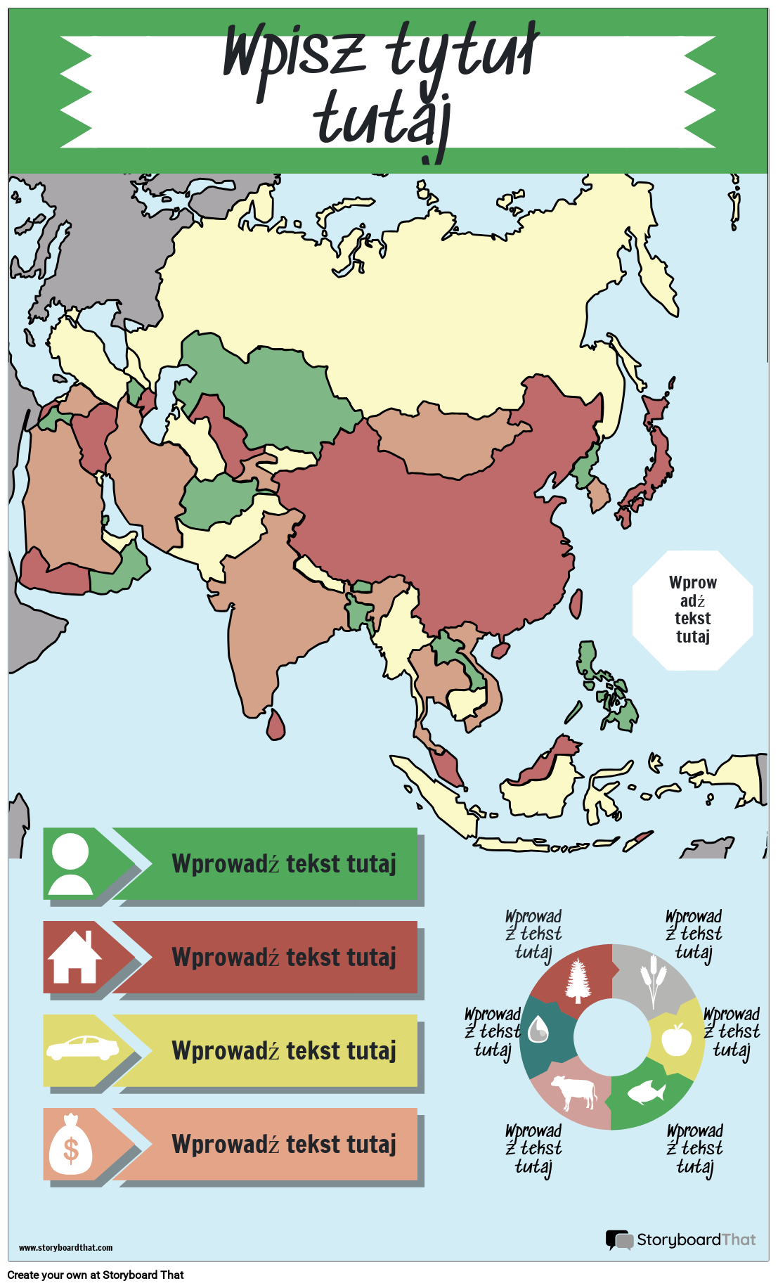 Infografiki geograficzne | Twórz infografiki na lekcje geografii! Wyświetlaj ważne fakty i informacje o krajach, kontynencie i świecie. W tym przykładzie użyto mapy Azji i Bliskiego Wschodu, jednak można użyć dowolnej mapy! Uczniowie i nauczyciele mogą dostosować tekst, kolory i wykresy, aby stworzyć własną olśniewającą infografikę geograficzną!