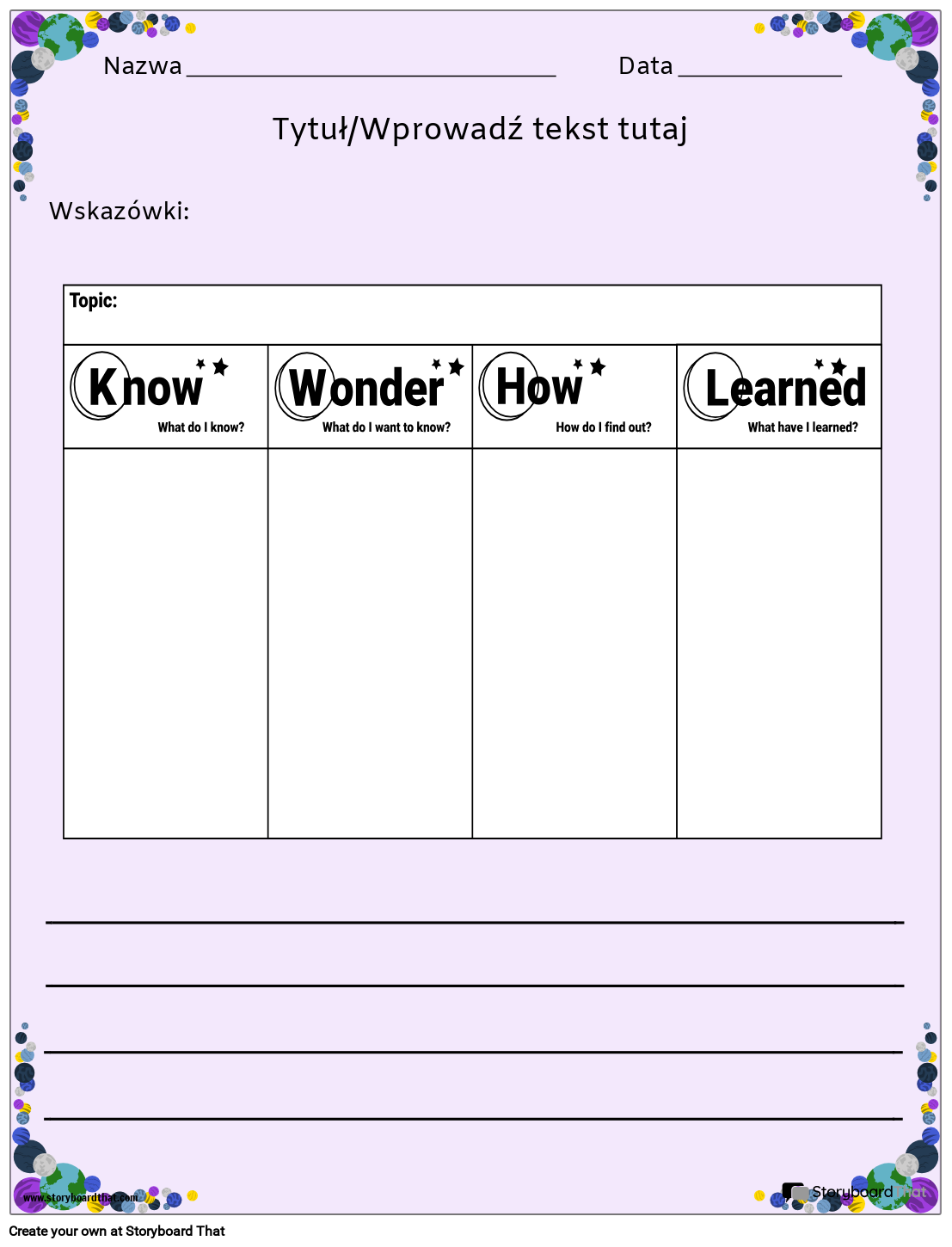 Wykresy KWL pomagają uczniom uporządkować pytania przed jednostką i dowiedzieć się, czego nauczyli się podczas jednostki.