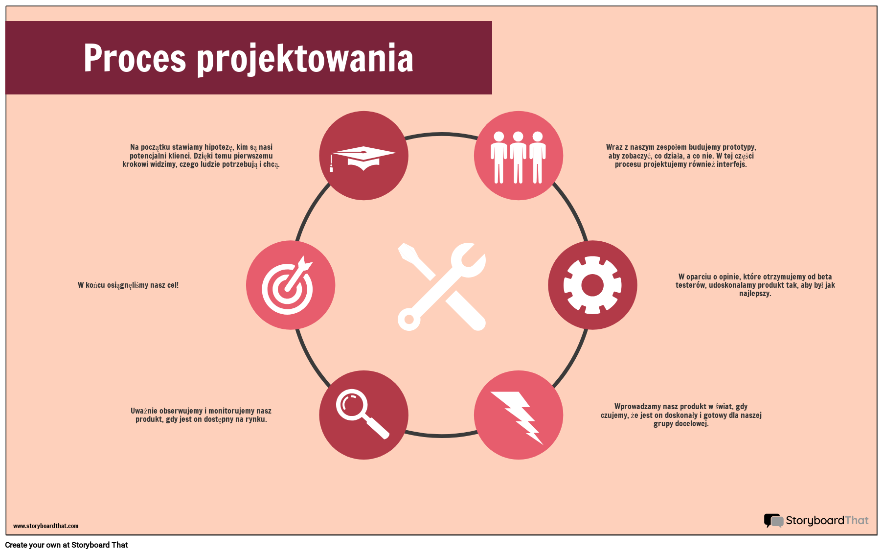 Na początku stawiamy hipotezę, kim są nasi potencjalni klienci. Dzięki temu pierwszemu krokowi widzimy, czego ludzie potrzebują i chcą. W końcu osiągnęliśmy nasz cel! Uważnie obserwujemy i monitorujemy nasz produkt, gdy jest on dostępny na rynku. Wraz z naszym zespołem budujemy prototypy, aby zobaczyć, co działa, a co nie. W tej części procesu projektujemy również interfejs. W oparciu o opinie, które otrzymujemy od beta testerów, udoskonalamy produkt tak, aby był jak najlepszy. Wprowadzamy nasz produkt w świat, gdy czujemy, że jest on doskonały i gotowy dla naszej grupy docelowej.