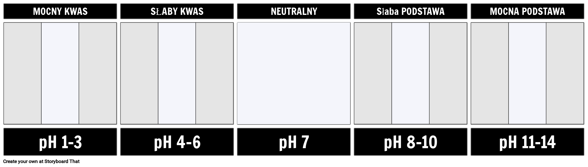 Szablon skali pH | Poproś uczniów, aby zmienili kolory tła w celu dopasowania do skali pH. Następnie dodaj przykłady elementów / substancji pasujących do każdej komórki.