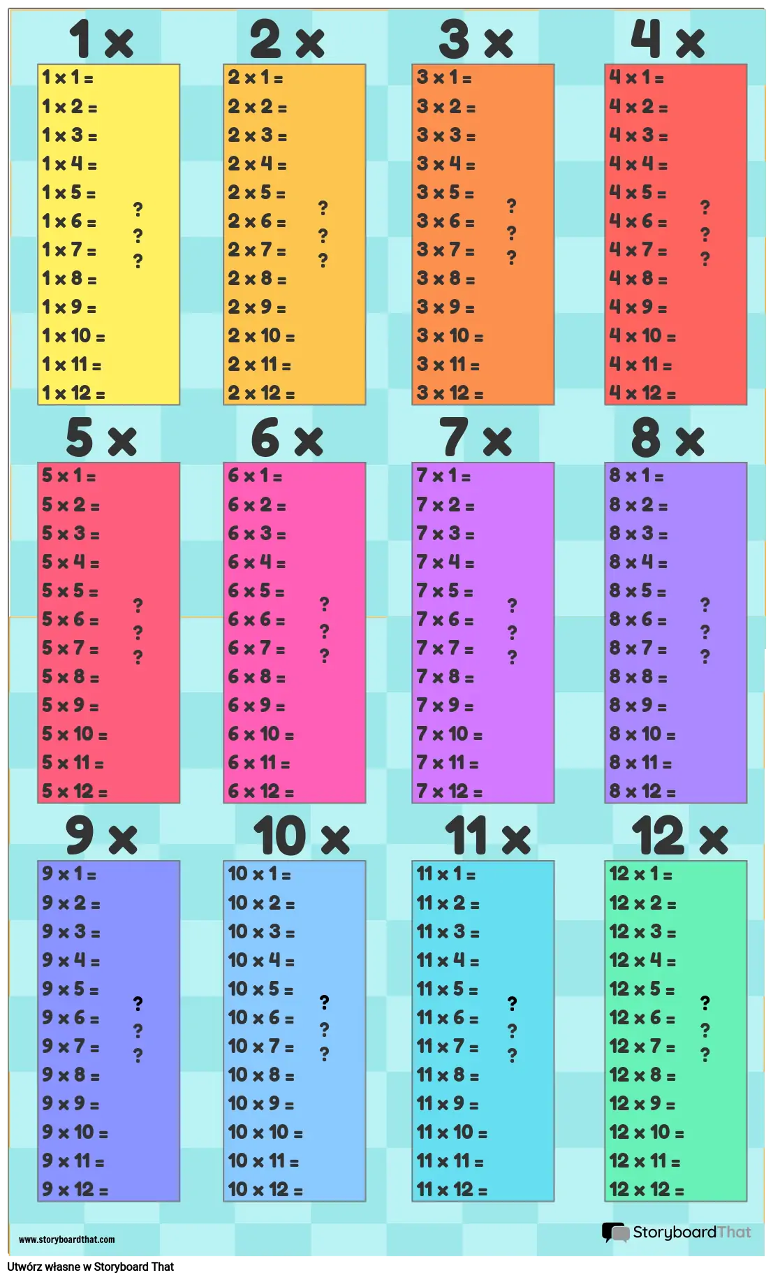 Szablony plakatów z tabliczką mnożenia są świetne do matematyki!