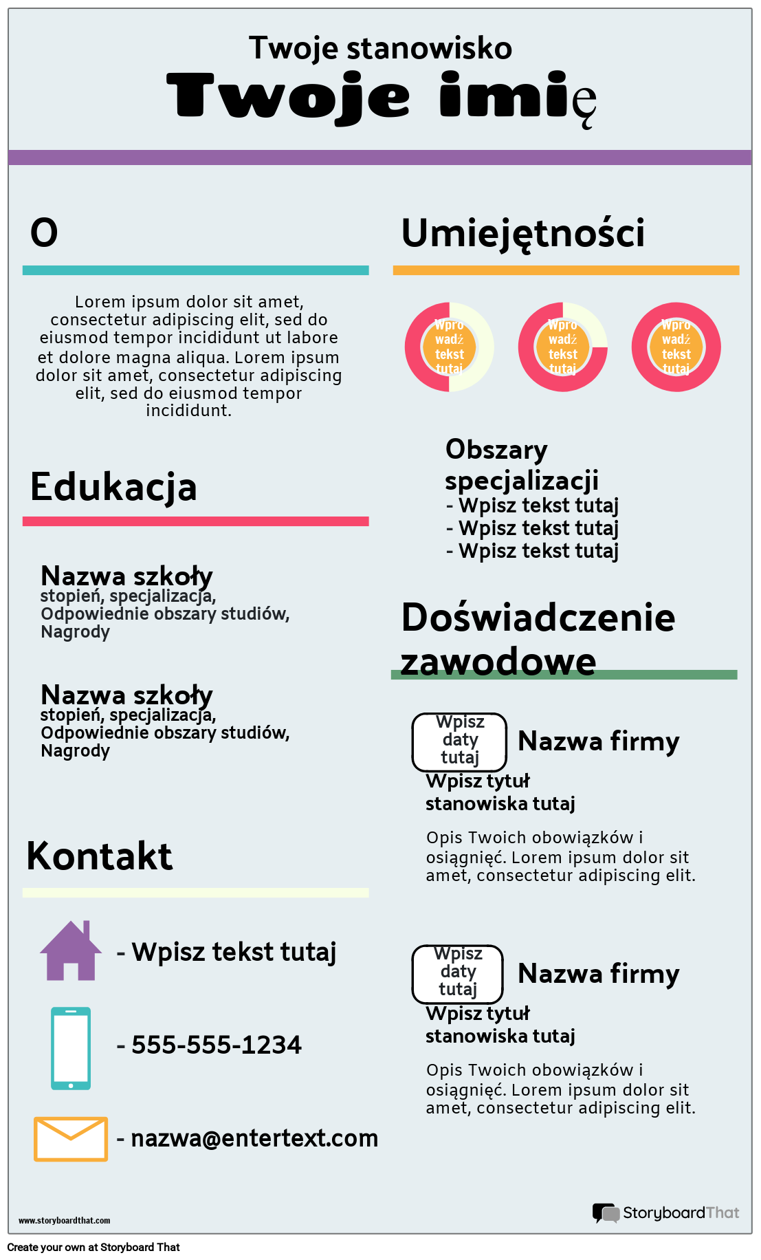 Utwórz infografiki CV | Niestandardowe szablony infografik CV ułatwiają zaprezentowanie umiejętności lub ćwiczenie pisania CV