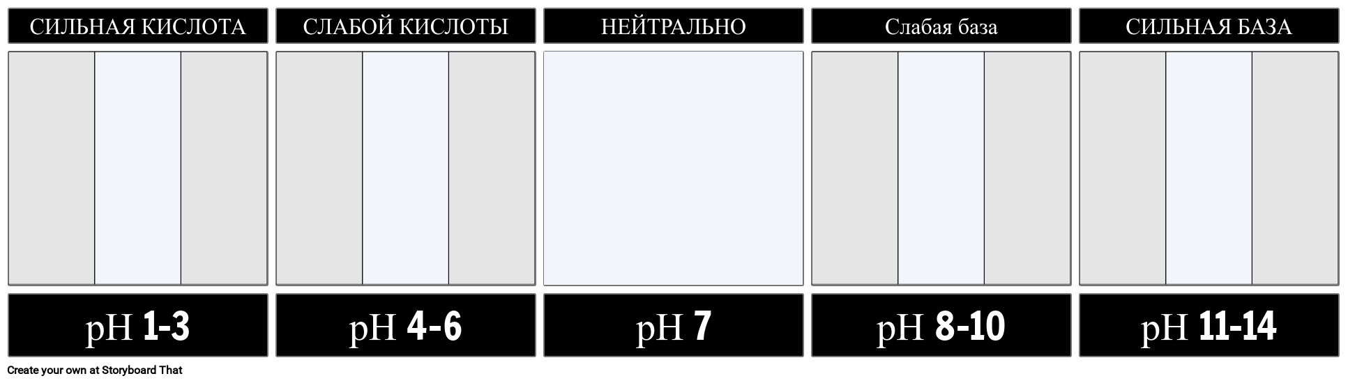 шаблон шкалы рН | Попросите учащихся изменить цвета фона в соответствии со шкалой pH. Затем добавьте примеры предметов / веществ, которые помещаются в каждую ячейку.