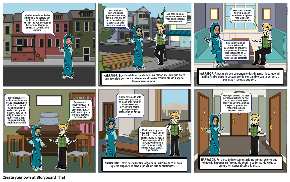 Muy buenos días a todos mi nombre es Carlota soy de la cultura Árabe de África y les voy a contar mi historia de Choque de culturas - Dominación cultural