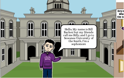 Hello, My name is Bill Backer, but my friends call me Billy, and I go to Sewanee University of the South, I'm a sophomore