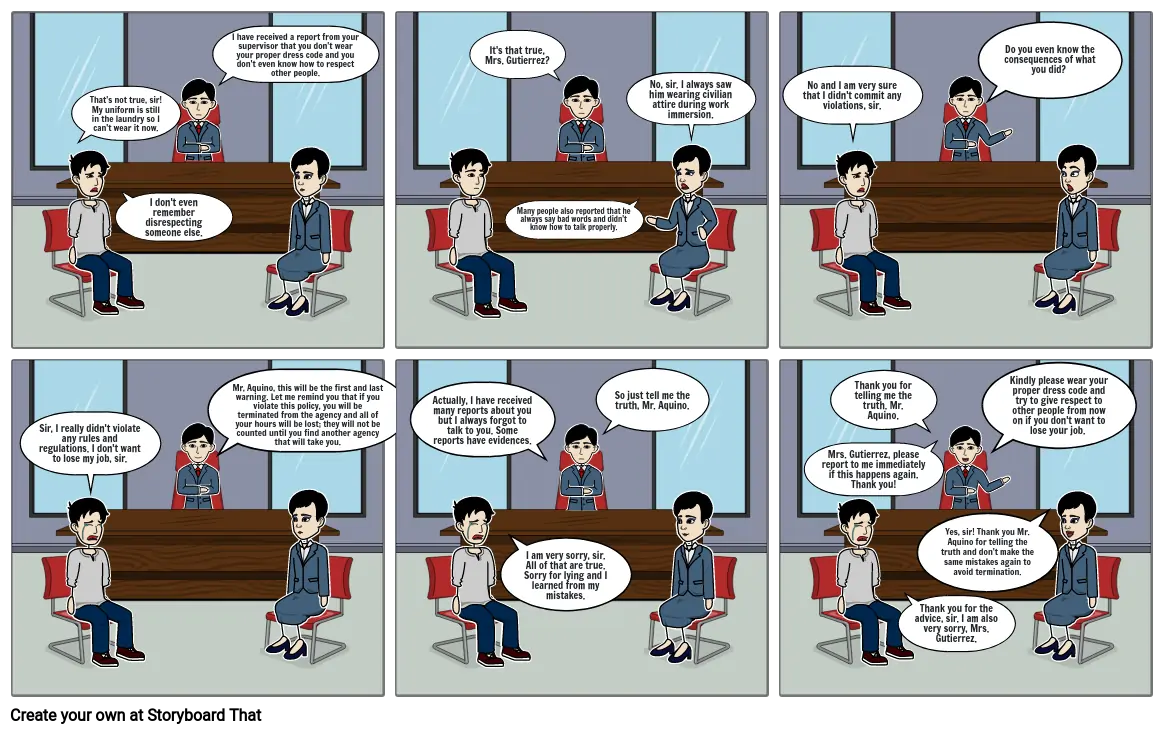 Yes, sir! Thank you Mr. Aquino for telling the truth and don't make the same mistakes again to avoid termination.