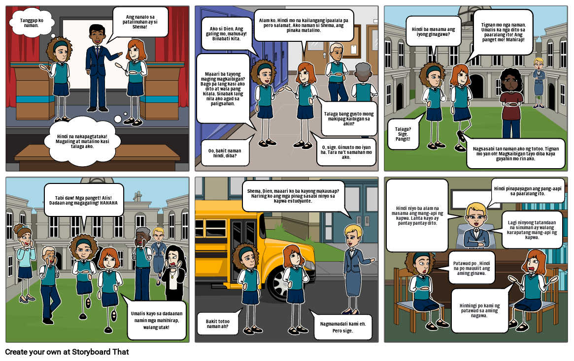 Hindi niyo ba alam na masama ang mang-api ng kapwa. Lahta kayo ay pantay pantay dito.