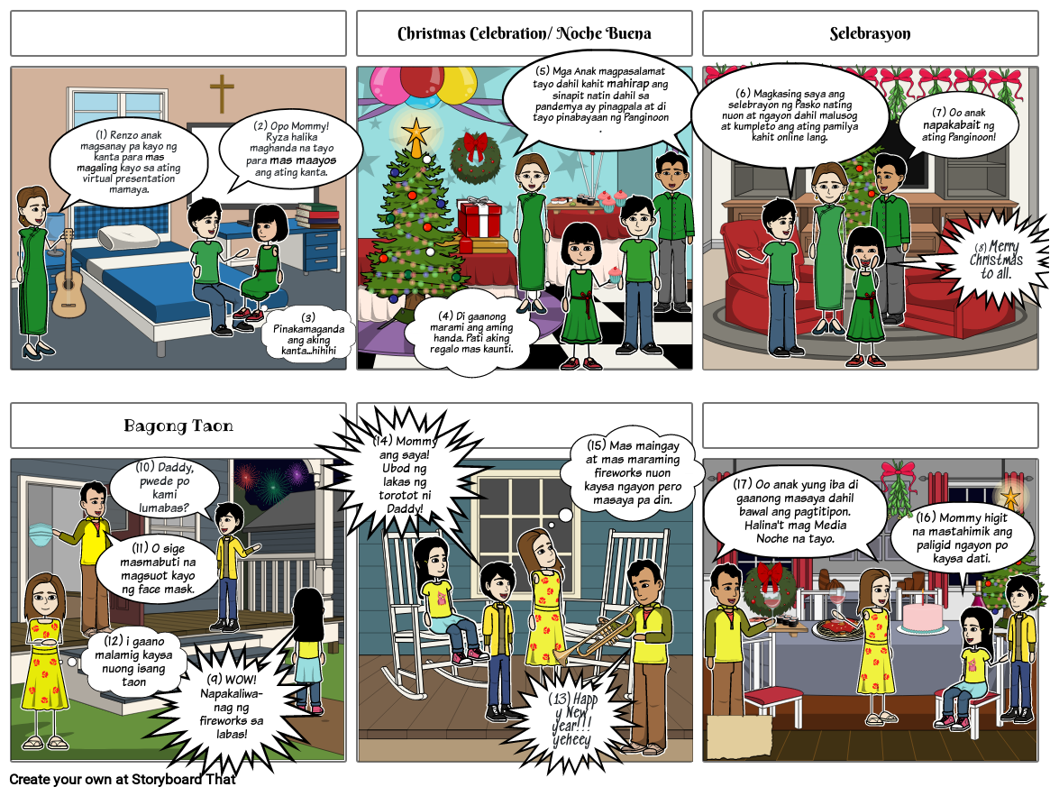 (17) Oo anak yung iba di gaanong masaya dahil bawal ang pagtitipon.Halina't mag Media Noche na tayo.