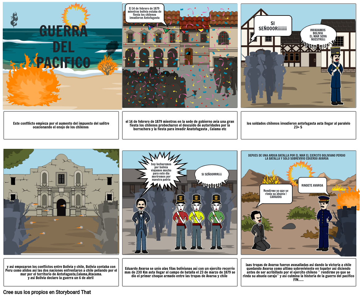 y asi empezaron los conflictos entre Bolivia y chile, Bolivia contaba con Peru como alidos asi las dos naciones enfrentaron a chile peliando por el mar por el territorio de Antofagasta,Calama,Atacama.y asi Bolivia declaro la guerra un 6 de abril