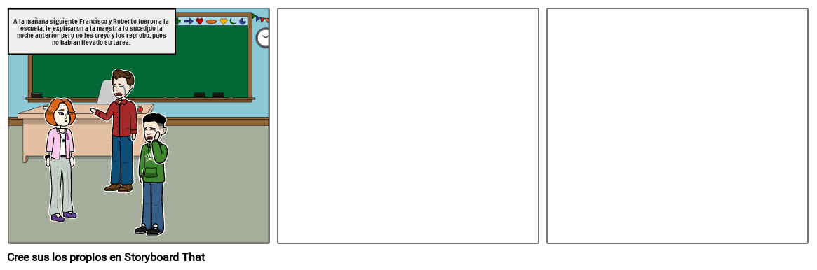 A la mañana siguiente Francisco y Roberto fueron a la escuela, le explicaron a la maestra lo sucedido la noche anterior pero no les creyó y los reprobó, pues no habían llevado su tarea.