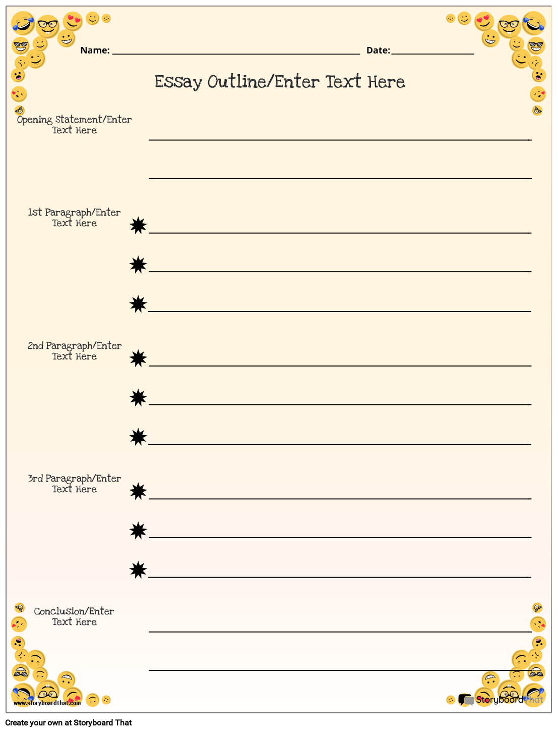 निबंध रूपरेखा टेम्पलेट। इमोजी थीम्ड।