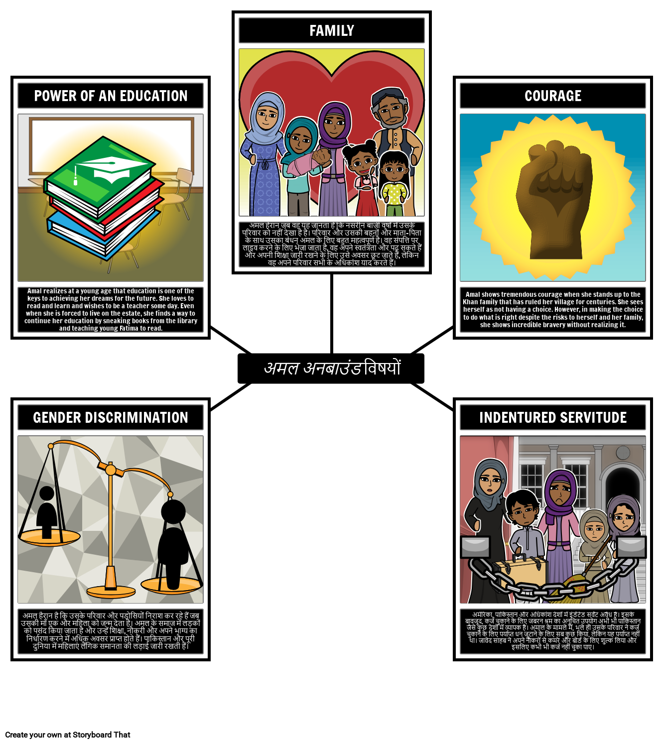 छात्र उपन्यास में मौजूद विभिन्न विषयों, प्रतीकों और रूपांकनों को ट्रैक कर सकते हैं और एक मकड़ी का नक्शा बना सकते हैं जो लेबल, परिभाषित और उन्हें दिखाता है।