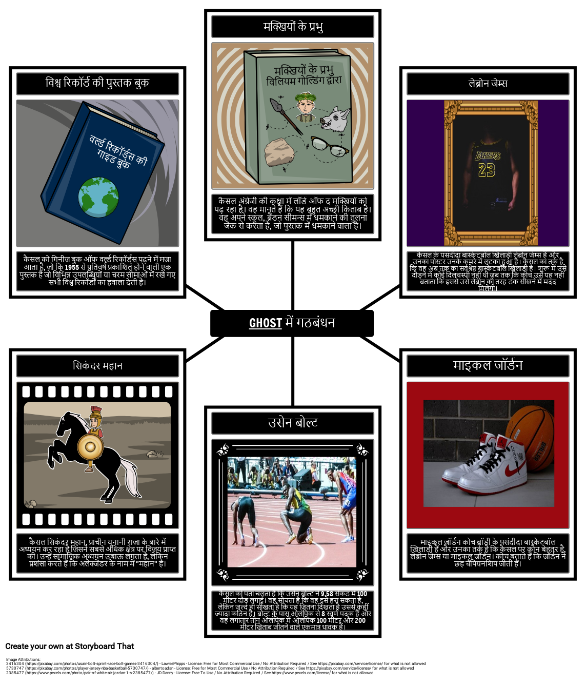 कला, साहित्य, एक व्यक्ति या एक घटना के एक प्रसिद्ध काम का संदर्भ है। पुस्तक, घोस्ट में आधुनिक दिन की संस्कृति के कई आकर्षण हैं। यह मकड़ी का नक्शा उनमें से 6 को दिखाता है। और भी कई हैं! छात्र जब तक पढ़ते हैं, तब तक वे खोज का आनंद ले सकते हैं और कहानी में उनके महत्व को बताते हुए पहचानने, चित्रण और जोड़ने के लिए एक मकड़ी के नक्शे का उपयोग कर सकते हैं।
