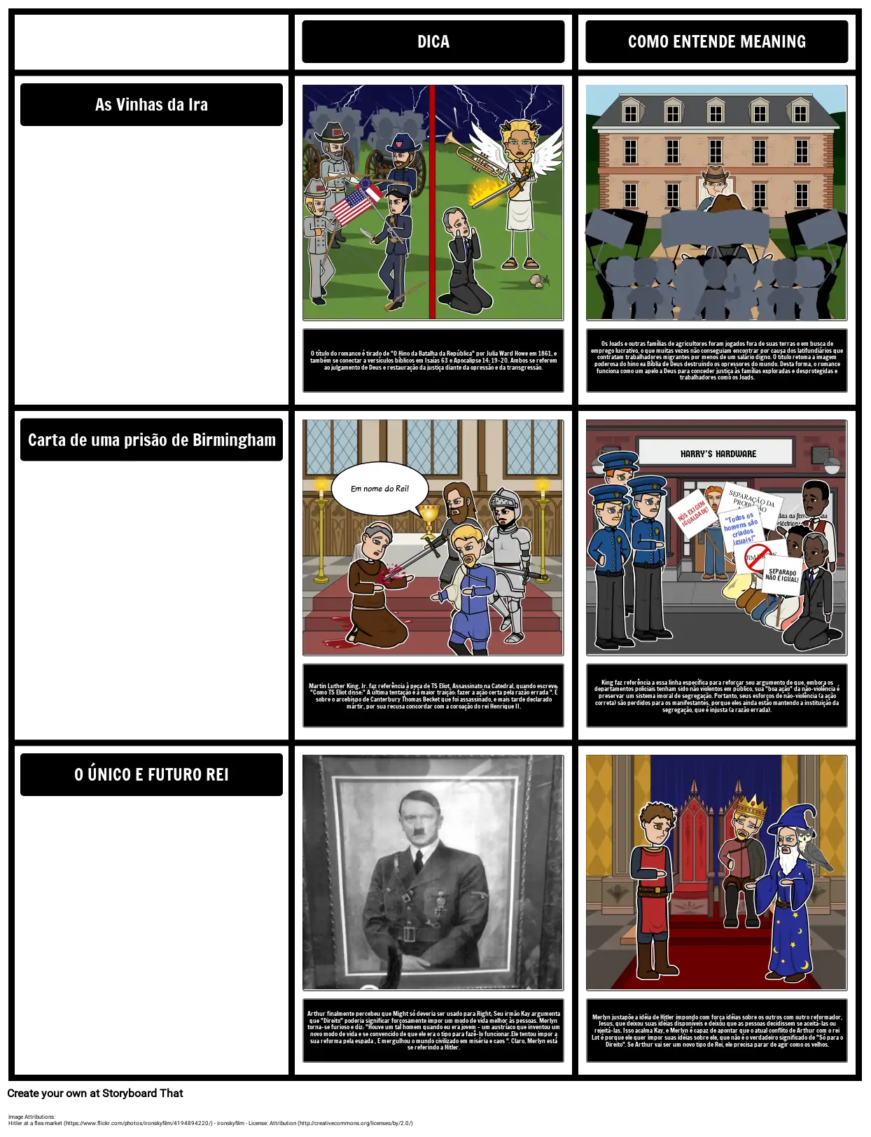 As alusões, embora importantes para ajudar os leitores a entender temas e personagens em um nível mais profundo, às vezes podem ser difíceis para os alunos entenderem. Envolva e desafie os alunos com atividades do Storyboard That!
