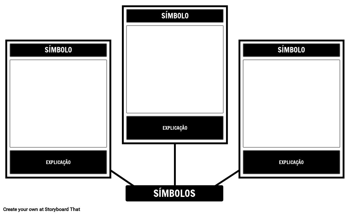 Modelo de simbolismo em branco - identifique três símbolos e os descreva nas células. Certifique-se de incluir uma explicação na parte inferior