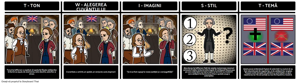 Încercați activități precum storyboarding pentru fiecare element TWIST, ilustrând fraze cheie sau discuții de grup despre limbajul lui Jefferson. Aceste abordări practice fac ca analiza TWIST să fie captivantă și accesibilă pentru elevii din clasele 6–12.
