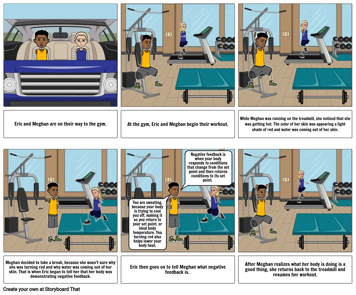 Meghan decided to take a break, because she wasn't sure why she was turning red and why water was coming out of her skin. That is when Eric began to tell her that her body was demonstrating negative feedback.