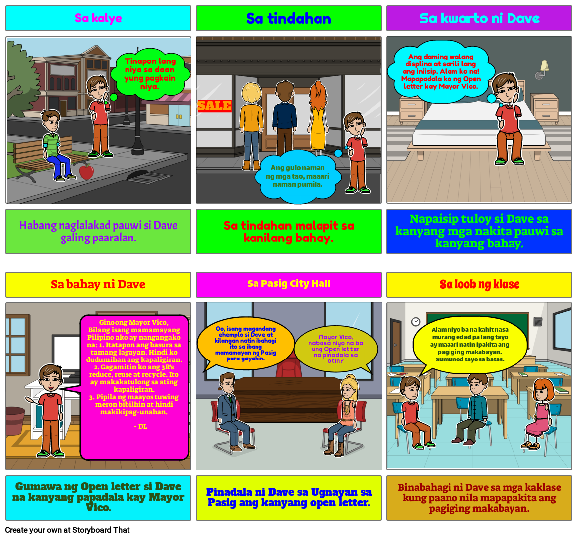 Ginoong Mayor Vico,Bilang isang mamamayang Pilipino ako ay nangangako na: 1. Itatapon ang basura sa tamang lagayan. Hindi ko dudumihan ang kapaligiran.2. Gagamitin ko ang 3R's reduce, reuse at recycle. Ito ay makakatulong sa ating kapaligiran. 3. Pipila ng maayos tuwing meron bibilhin at hindi makikipag-unahan.- DL