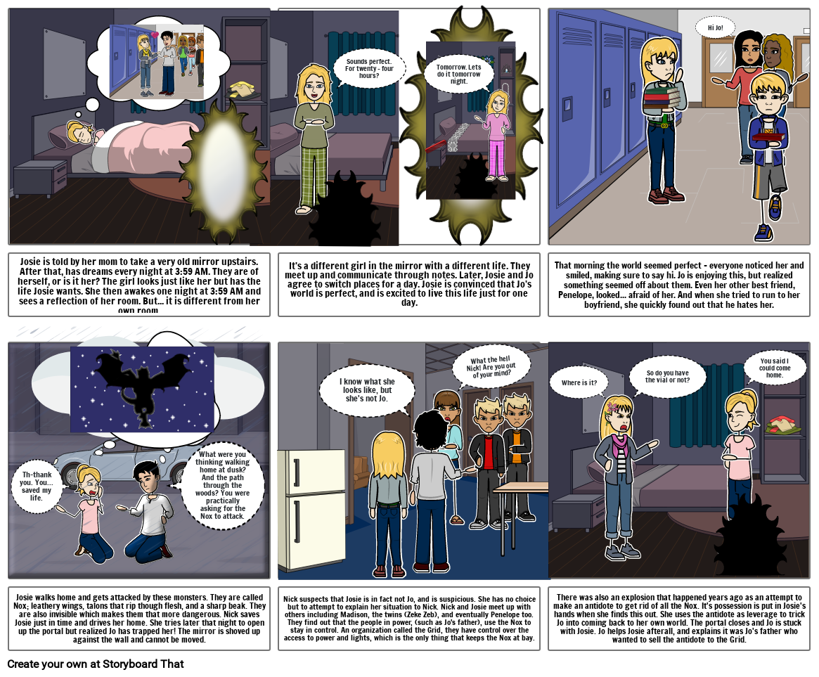 Josie is told by her mom to take a very old mirror upstairs. After that, has dreams every night at 3:59 AM. They are of herself, or is it her? The girl looks just like her but has the life Josie wants. She then awakes one night at 3:59 AM and sees a reflection of her room. But... it is different from her own room.