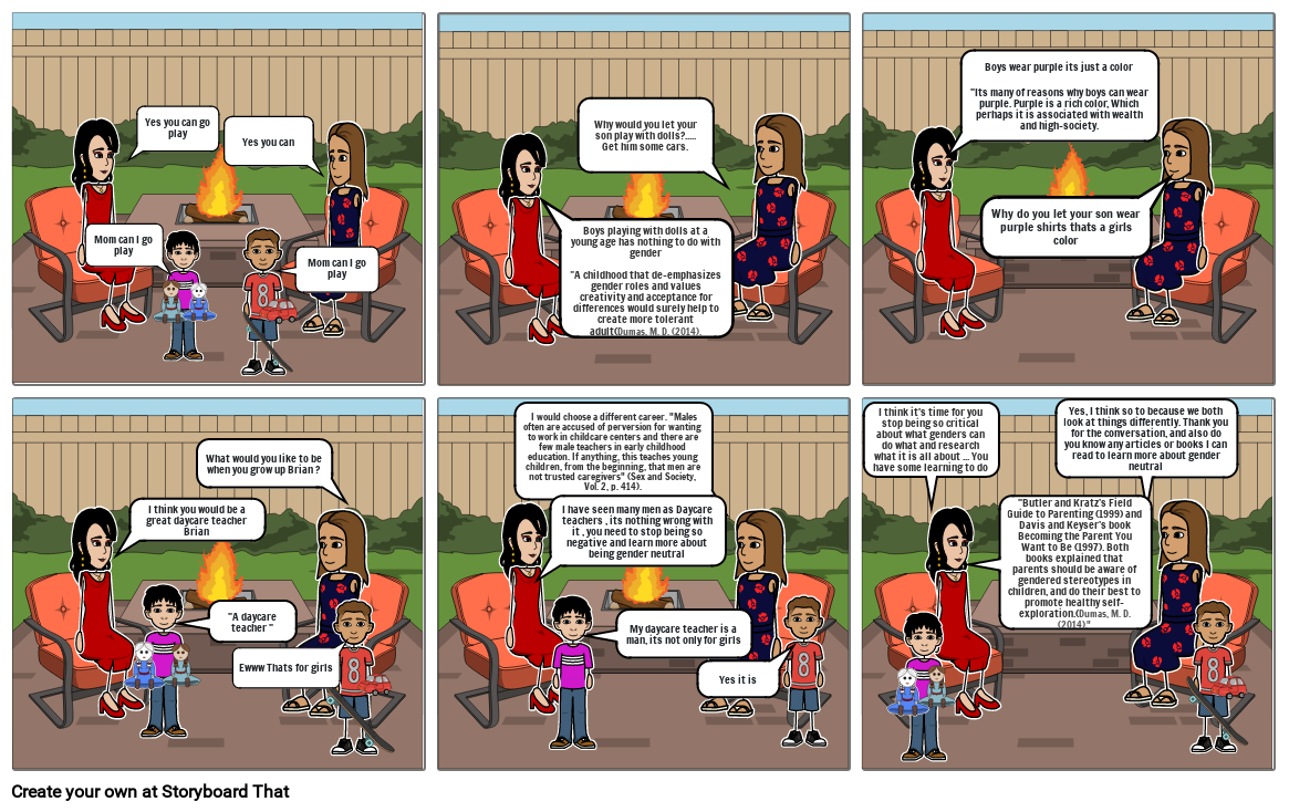 Boys playing with dolls at a young age has nothing to do with genderA childhood that de-emphasizes gender roles and values creativity and acceptance for differences would surely help to create more tolerant adult(Dumas, M. D. (2014).