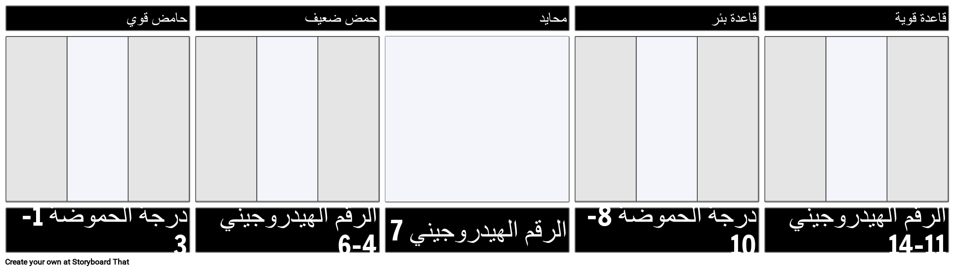 مقياس درجة الحموضة | اطلب من الطلاب تغيير ألوان الخلفية لتتناسب مع مقياس درجة الحموضة. ثم أضف أمثلة للعناصر / المواد التي تناسب كل خلية.