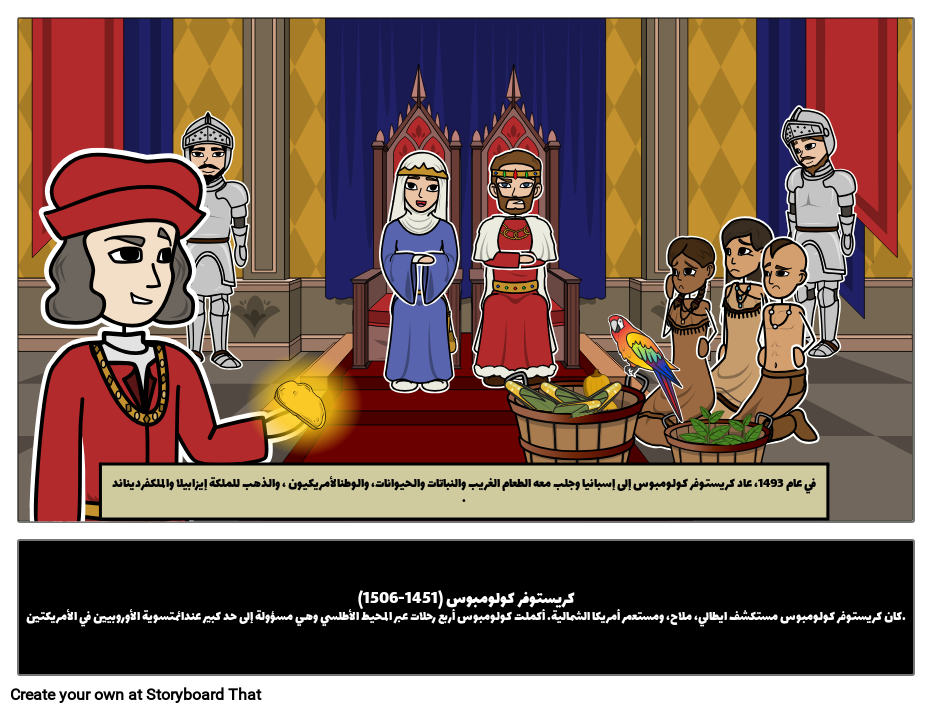 كريستوفر كولومبوس (1451-1506)كان كريستوفر كولومبوس مستكشف ايطالي، ملاح، ومستعمر أمريكا الشمالية. أكملت كولومبوس أربع رحلات عبر المحيط الأطلسي وهي مسؤولة إلى حد كبير عندائمتسوية الأوروبيين في الأمريكتين.