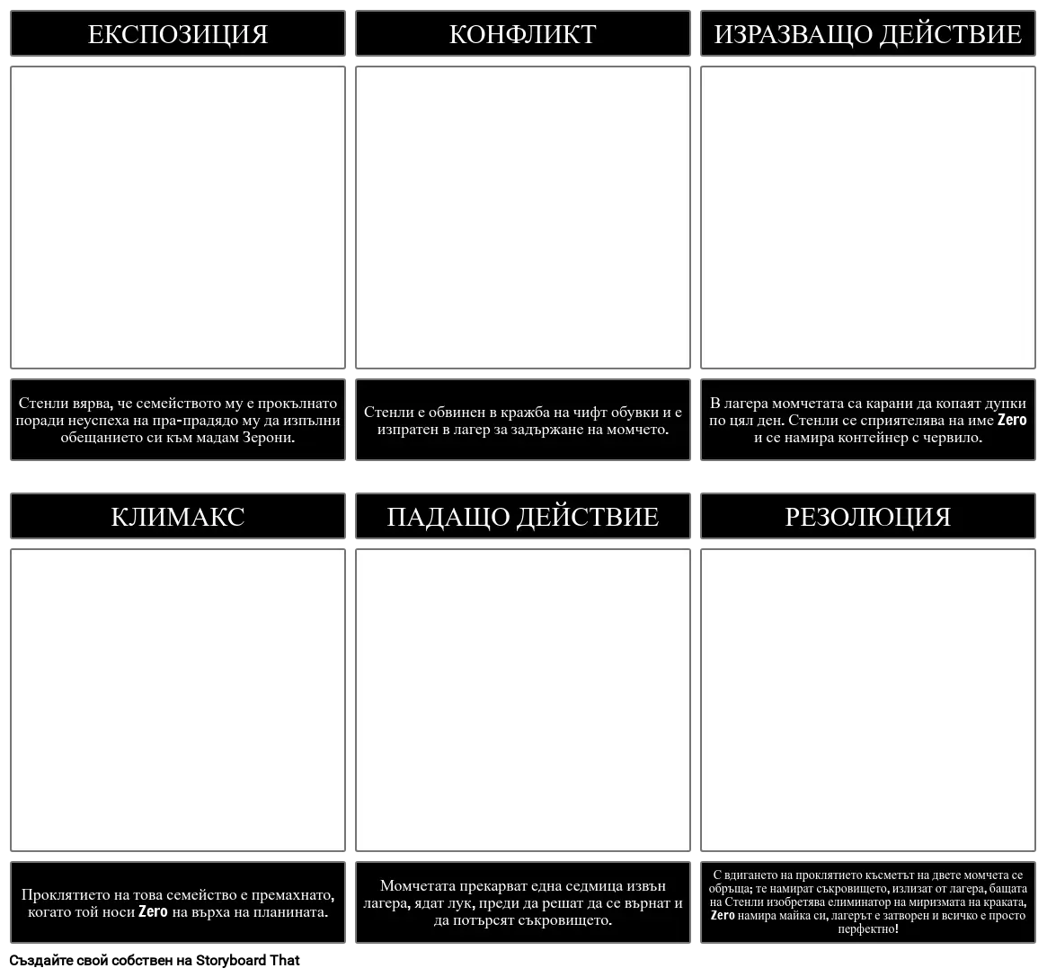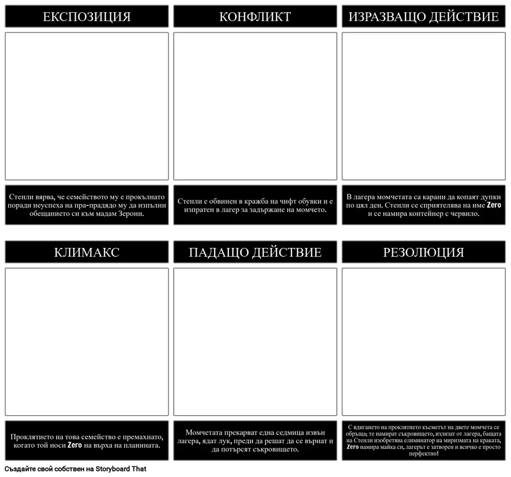 В лагера момчетата са карани да копаят дупки по цял ден. Стенли се сприятелява на име Zero и се намира контейнер с червило.