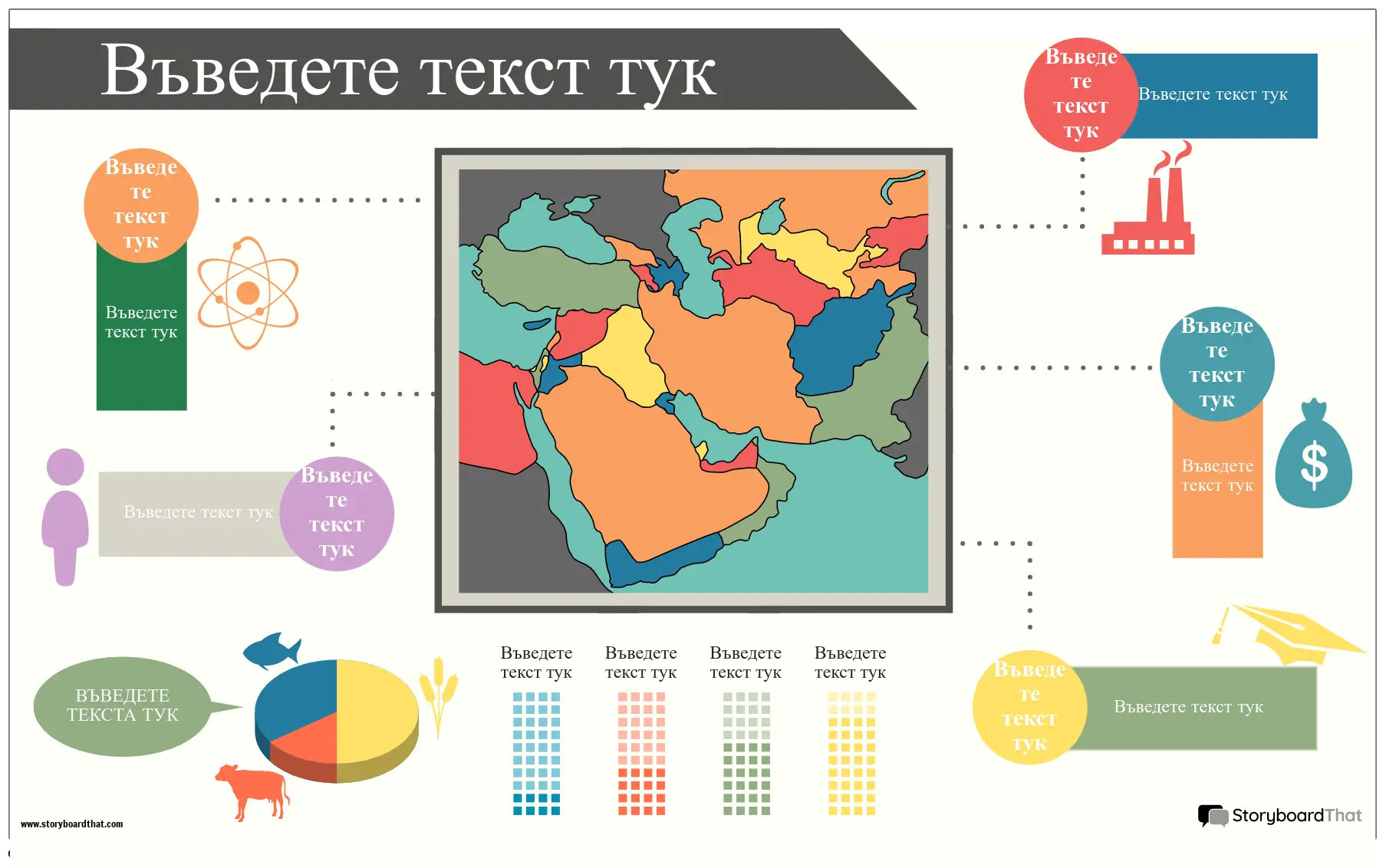 Инфографика по география | Създайте инфографика за часовете по география! Показвайте важни факти и информация за държави, континенти и земното кълбо. Може да се използва всяка карта! Учениците и учителите могат да персонализират текста, цветовете и графиките, за да създадат своя собствена ослепителна географска инфографика!