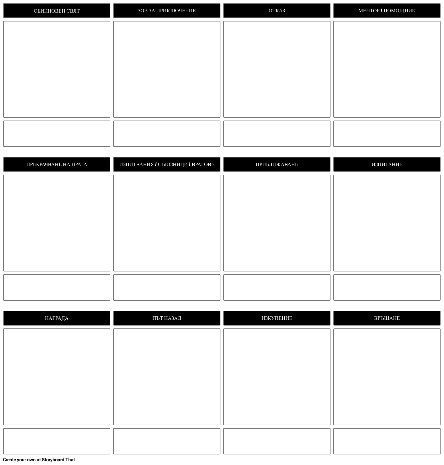 Шаблон за пътешествие на героя | Накарайте учениците да идентифицират етапите от пътуването на героя в книгата, която четете. Те могат да използват произведения на Storyboard That или да качват свои собствени изображения