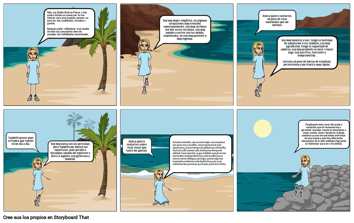 Hola, soy Ebelin Andrea Pomar y hoy quiero darles un paseo por mi ser interior para que puedan conocer un poco mi, mis cualidades, virtudes y gustos.Además poder reflexionar si en medio de todo soy consciente como de manejar mis habilidades emocionales.