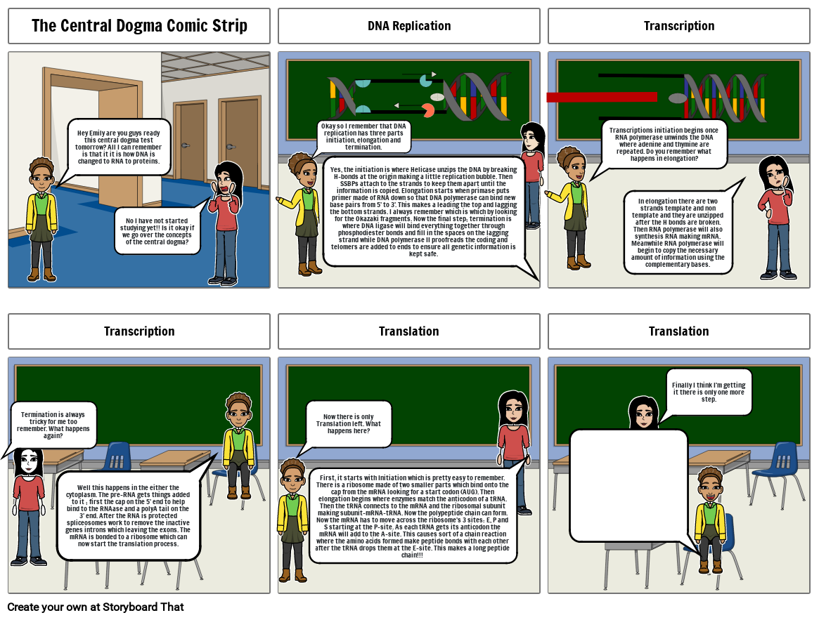 Hey Emily are you guys ready this central dogma test tomorrow? All I can remember is that it it is how DNA is changed to RNA to proteins.
