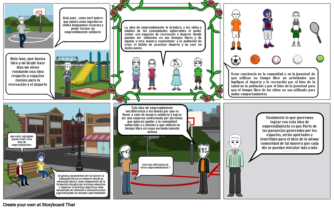 La idea de emprendimiento le brindara a las niños y adultos de las comunidades vulnerables el poder contar con espacios de recreación y deporte donde puedan ser utilizados en sus tiempos libres y de alguna u otra manera concientizar a la población de crear el habito de practicar deporte y no caer en malos pasos.