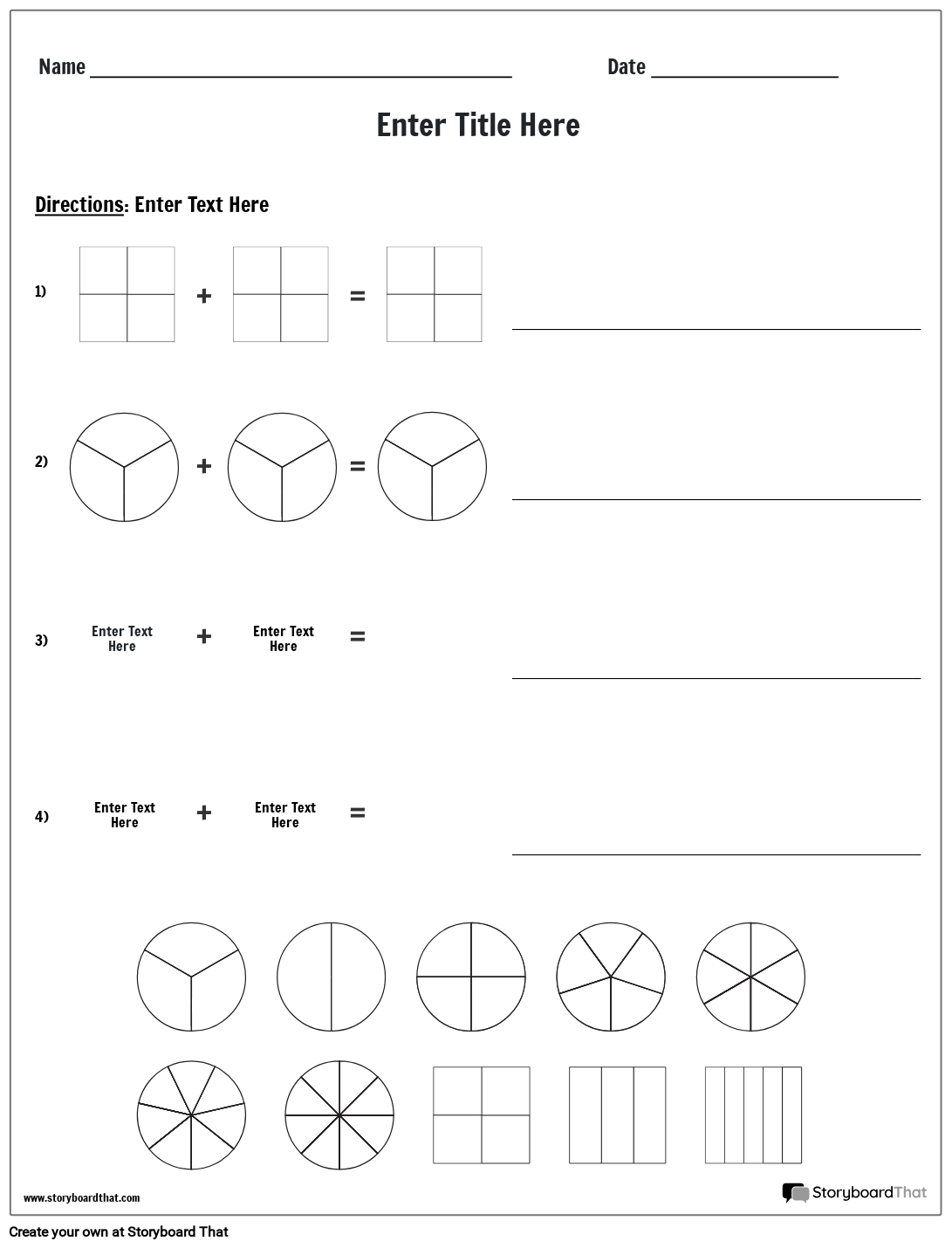 दृश्य अंश जोड़ वर्कशीट टेम्पलेट