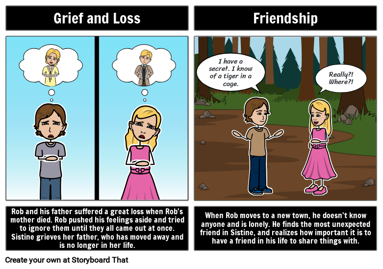 Rob and his father suffered a great loss when Rob's mother died. Rob pushed his feelings aside and tried to ignore them until they all came out at once. Sistine grieves her father, who has moved away and is no longer in her life.