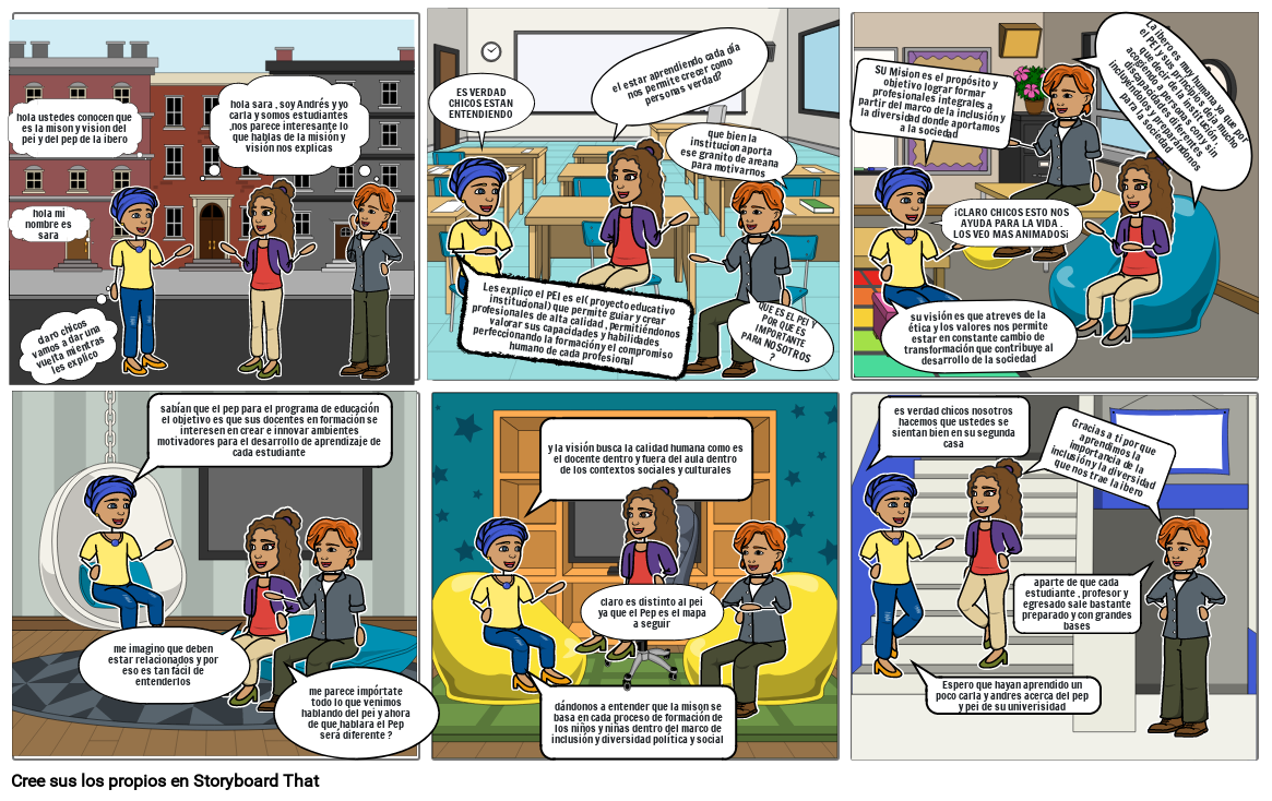 hola sara , soy Andrés y yo carla y somos estudiantes ,nos parece interesante lo que hablas de la misión y visión nos explicas