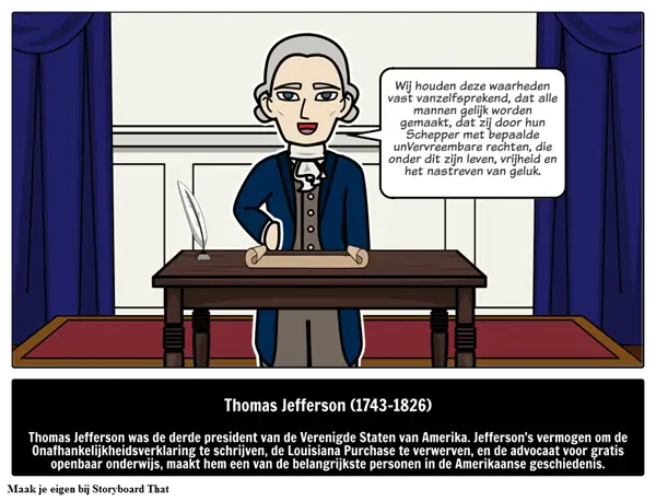 Thomas Jefferson (1743-1826)Thomas Jefferson was de derde president van de Verenigde Staten van Amerika. Jefferson's vermogen om de Onafhankelijkheidsverklaring te schrijven, de Louisiana Purchase te verwerven, en de advocaat voor gratis openbaar onderwijs, maakt hem een van de belangrijkste personen in de Amerikaanse geschiedenis.