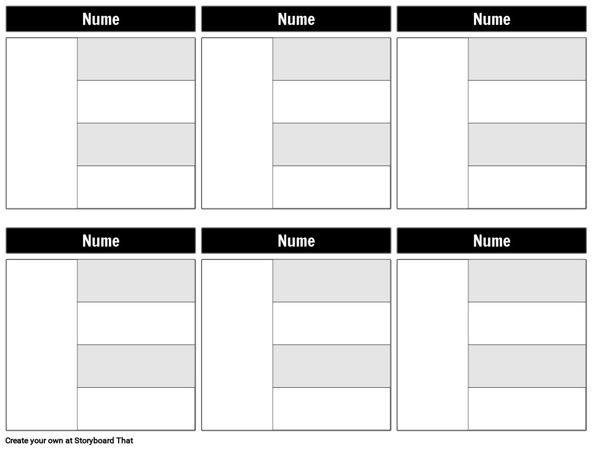 Șablon: Harta personajelor cu patru câmpuri pentru informații. Actualizați numele de caractere și adăugați șablon la sarcina dvs.